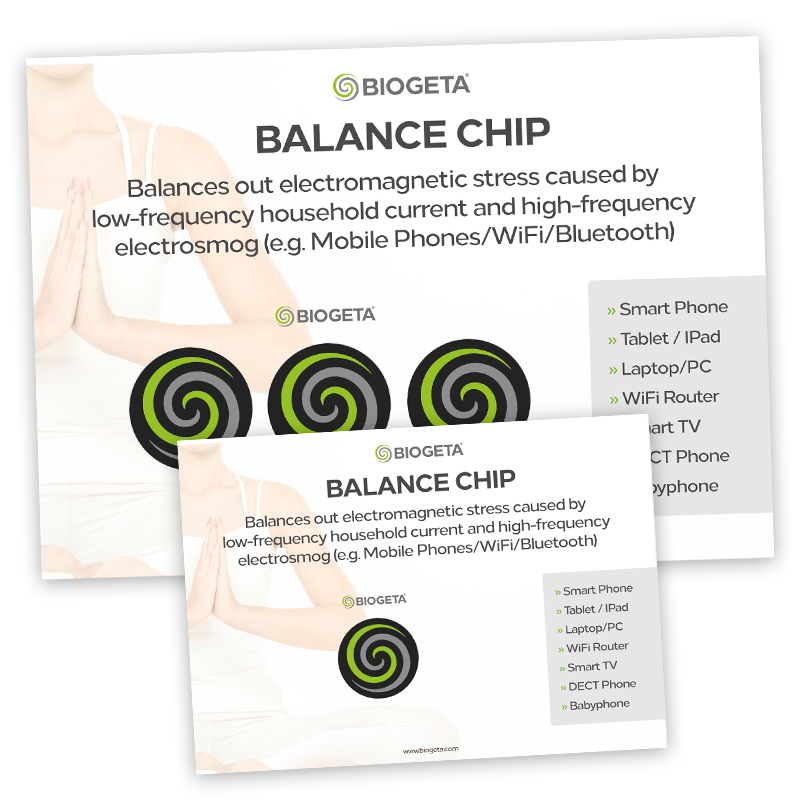 Grâce à la puce BIOGETA® BALANCE, le corps est protégé dans les valeurs de fréquence du rayonnement haute fréquence modulé par impulsions et équilibré dans les polarités correspondantes.