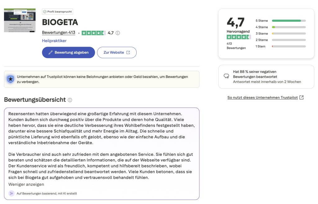 La sua misurazione ha poi rivelato che avevo dormito su un punto di incrocio della griglia di curry nella zona della testa. Ora ho l'Biogeta L da 2 mesi e sono assolutamente felice che, sebbene abbia avuto un attacco MEGA (aggravamento iniziale???) dopo poco tempo, ora sono libero da attacchi di emicrania da due mesi!!!!